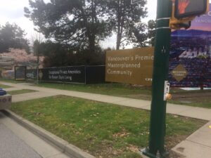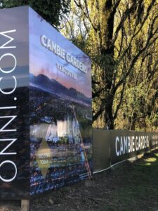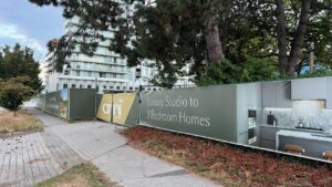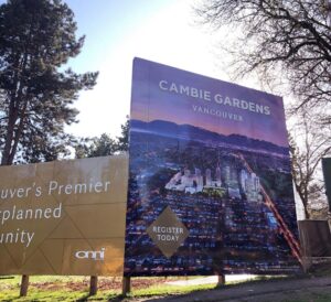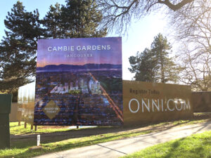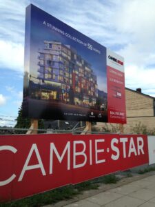 construction fence hoarding and site sign at cambie gardens