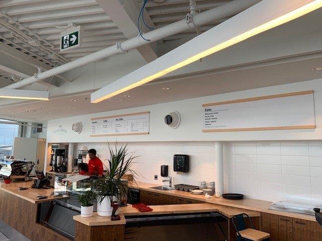 - Two cafe menus made out of 6mm alupanel, wrapped in printed graphics. Each menu has two 3M Di-Noc Birch Wood wrapped caps that were pre-installed onto the menu boards